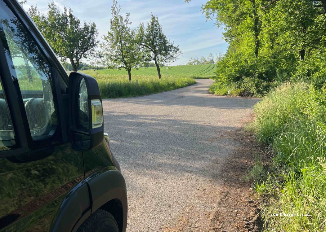 Kleiner Parkplatz mit Blick in den Wald ca 50 Meter neben der Bundesstraße, geht für eine Nacht