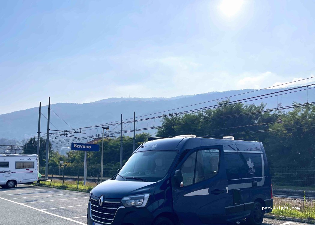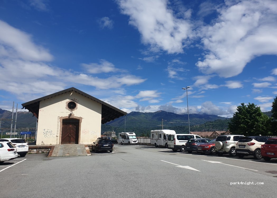Parking sur un ancien quai de la gare, surplombant Baveno avec vue sur la ville et le lac. Idéalement situé à 5 mn du centre et du départ des bateaux pour les îles Borromées. Nous y avons passé une nuit tranquille. A savoir pour ceux qui ont le sommeil léger, passages de quelques trains et route en contrebas.