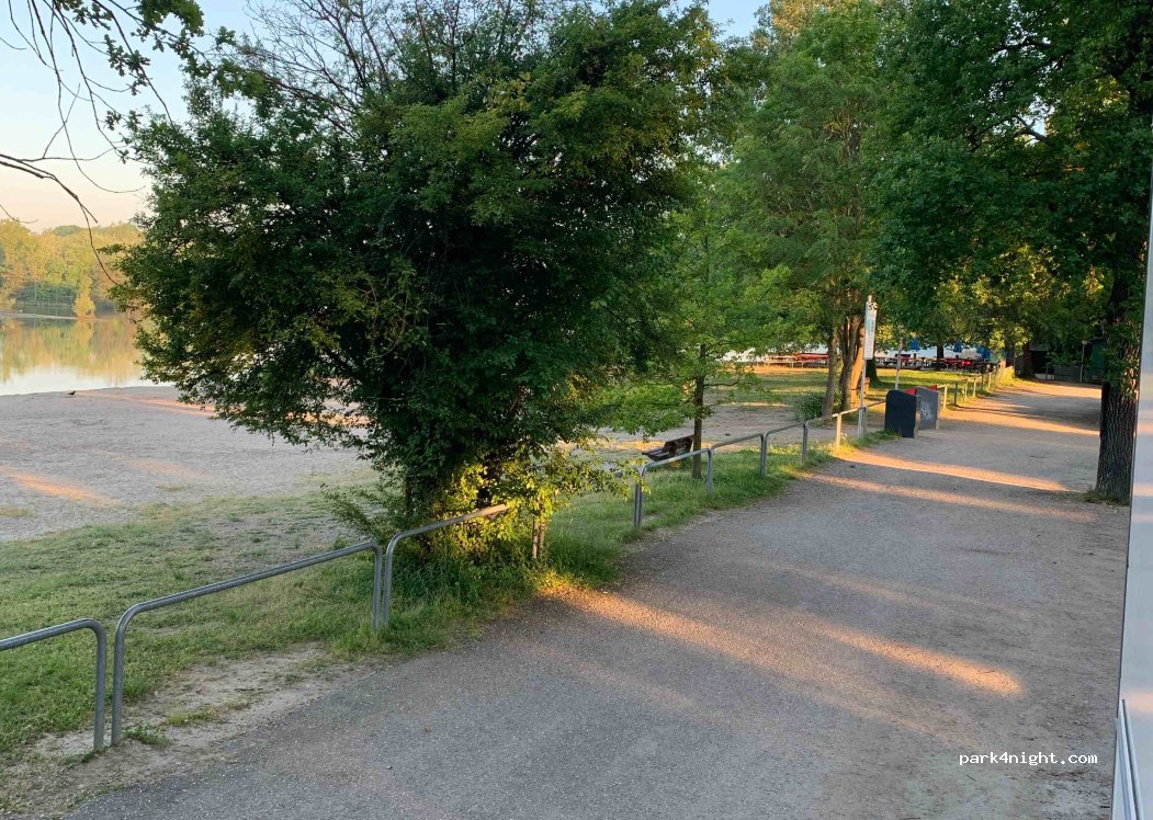 Sehr schöner Parkplatz direkt am Streitköpflesee, sehr ruhig. Im Sommer dürfte hier viel los sein. Zufahrt von Linkenheim vorbei am Betonwerk. Vor Ort gibt es einen Kiosk – vermutlich nur während der Saison.