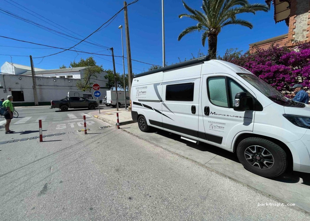 Con la intención de pasar a Doñana , nos ha coincidido con la salida de los romeros que pasaban a Doñana para ir al Rocío y las calles estaban cortadas. Hemos llegado a este punto y con la calle cortada justo había un sitio donde nos cabía la camper, muy cerca de la salida de la barcaza que cruza el Guadalquivir. Mucha suerte en este día en el que comienza la romería al Rocío.