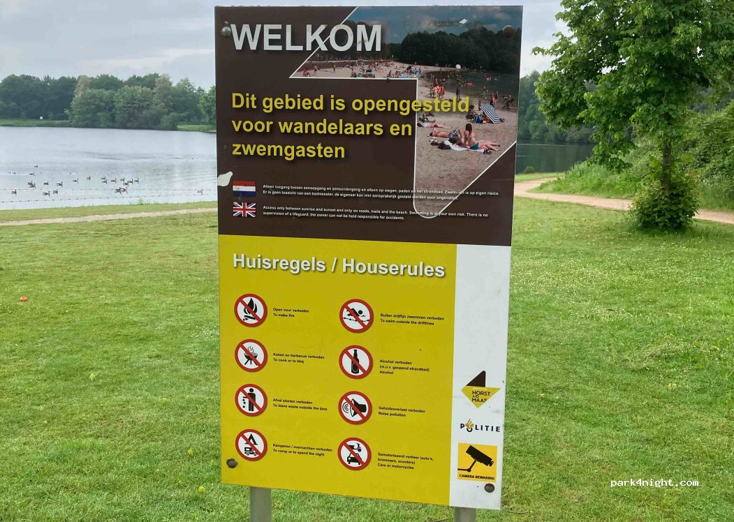 Parking space at public lake, beautiful view. Beautiful beach (free). Beautiful walks from the parking lot. Restaurant nearby . Only during the day there is a sign that prohibits camping. Very nice and good restaurant Graaf ter Horst, 800 meters walk through a beautiful area.
