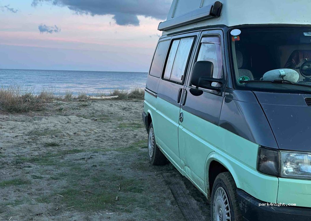 Sind auch durch die kleine parallel Straße zu diesem Platz gelangt. War ohne 4x4 super möglich, wenn man aufpasst dass man nicht stecken bleibt. Parken direkt am Meer. Ab 18:00 Uhr kam keiner mehr vorbei. Tagsüber recht frequentiert von Fußgängern (sonntags). Wir hatten unsere Ruhe und eine ruhige Nacht verbracht. Es ist sehr dunkel und man hört das Meeresrauschen. Keine Mülleimer vorhanden.