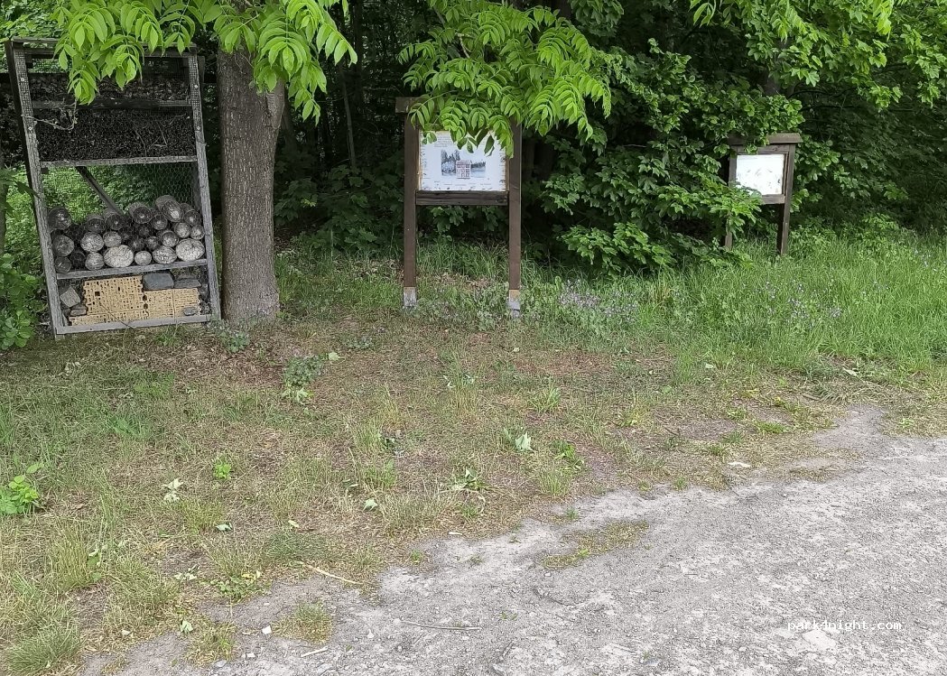 Es ist ein ruhiger Schotterplatz neben der Straße gegenüber von einem Fußballplatz. Hier verläuft ein kleiner Bach, es gibt Bänke und einen Abfalleimer. Man kann hier recht ungestört einen Rast einlegen oder eine Nacht verbringen.