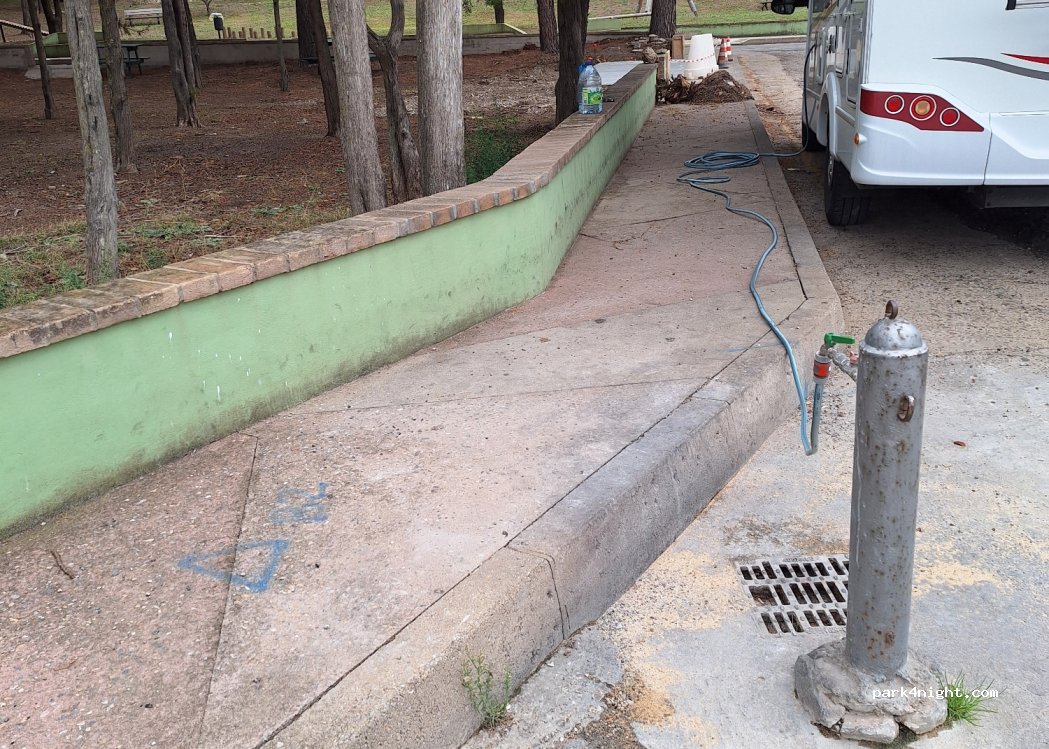 Guter Platz für eine Nacht. Tagsüber viel Verkehr aber nachts sehr ruhig. Wasser fließt mit gutem Druck und hat ein Gewinde für einen Schlauchanschluss. Problemlos erreichbar.