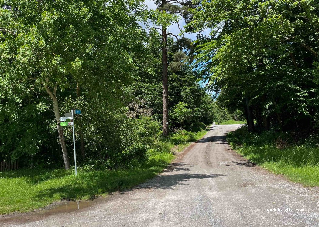 Parking in the forest near the country road. Garbage cans available at the intersection. Morning walkers mainly on weekends.