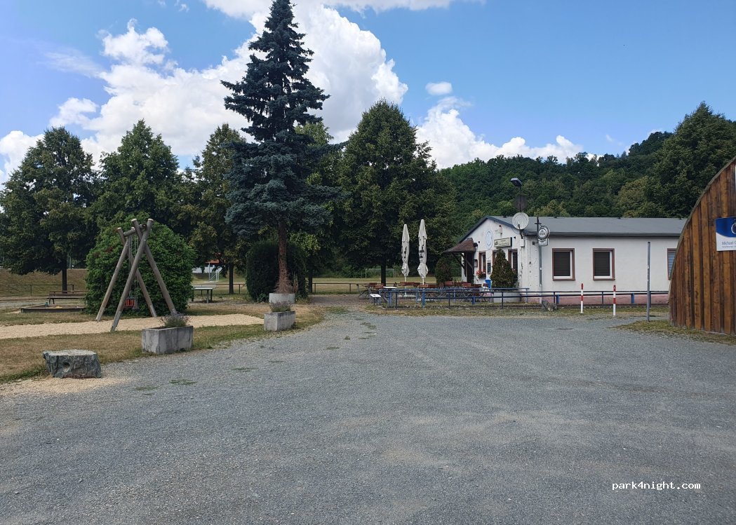 ...kostenfreier Stellplatz für 5 Womos, max. 2 Nächte...wunderbarer Ausgangspunkt für Wanderungen oder Besuch der Burgruine (ebenfalls kostenlos)...Lebensmittelläden in der Nähe...Platz wird allerdings bei Heimspielen d. Fußballvereins als Parkplatz genutzt... deswegen sind nicht immer alle Stellplätze frei...nachts absolut ruhig... eindeutige Empfehlung und ein Dankeschön an die Gemeinde...