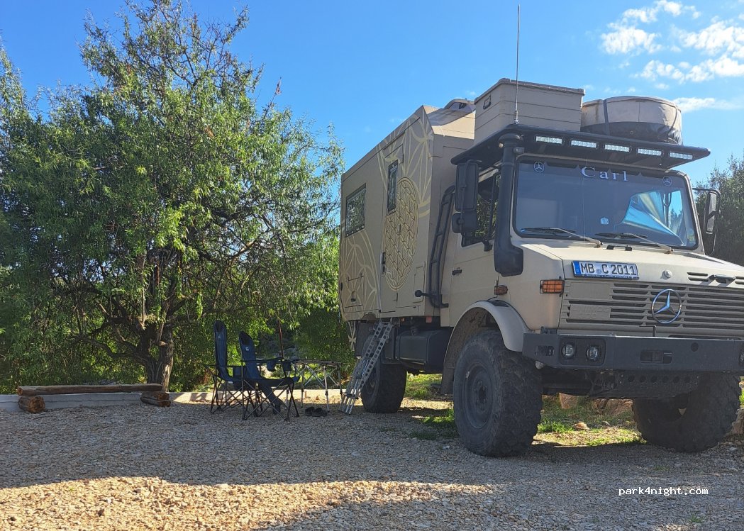 We spent one great night here, the place has amazing views & all the camper services which the owners are happy to assist with. We even got some fresh eggs in the morning! Great hosts. Kitchen facilities & eating terrace are available for use also. We heard from other guests the food is really good, but had brought our own. We even got some tips for exploring the local area. No problem for 7m van