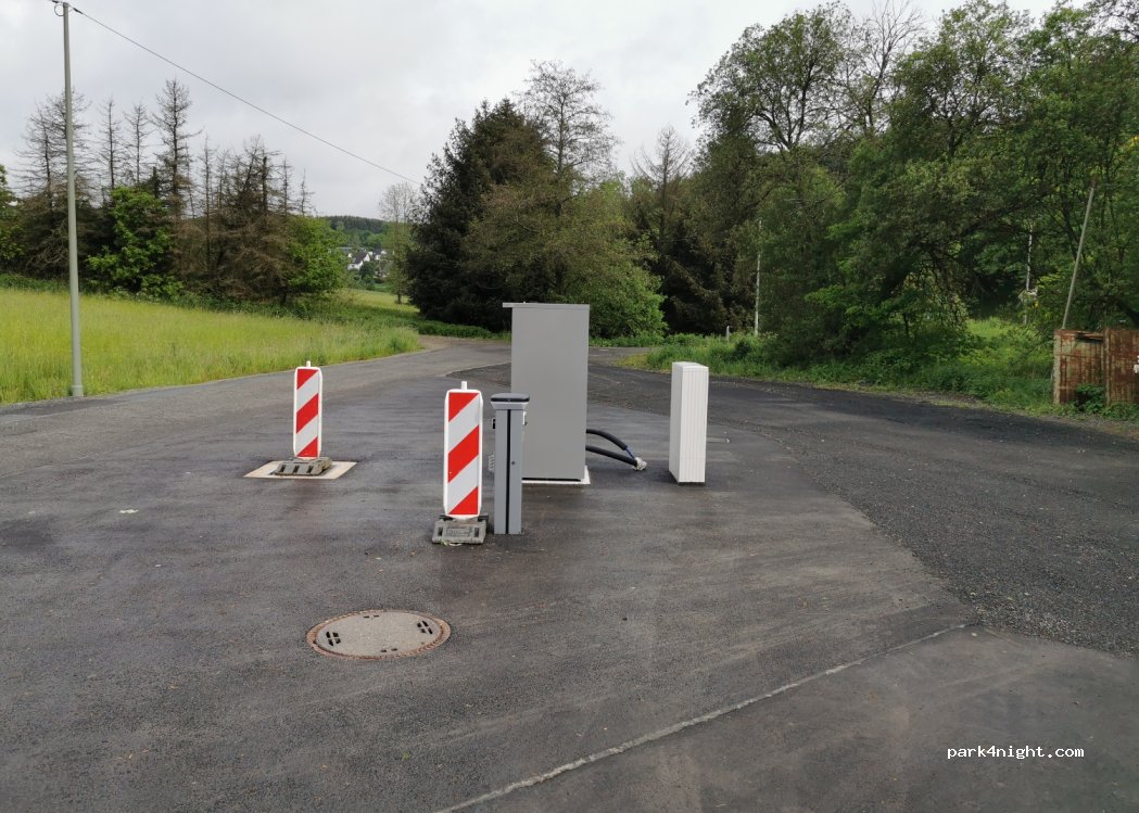 Nouvelle place de parking pour camping cars pour 2 camping cars, zone goudronnée, à Osthelden près de Kreuztal. A proximité de 2 étangs et du golf, le Berghaus est TOP pour se promener.