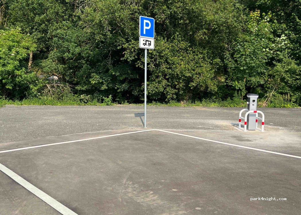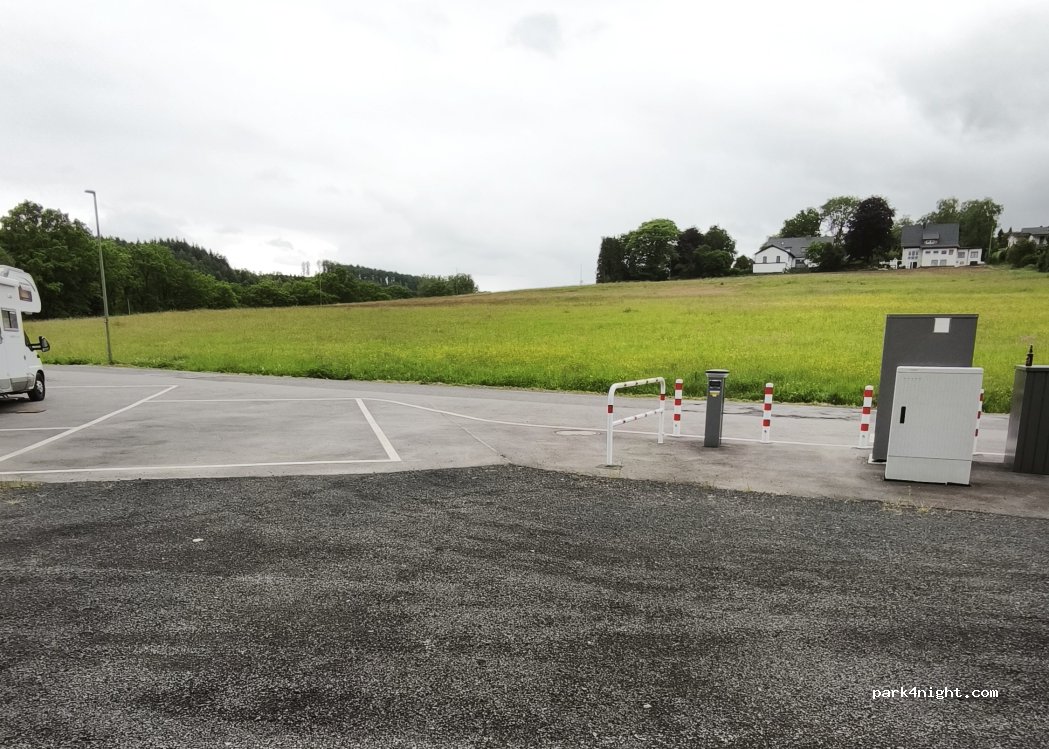 New RV parking space for 2 RVs, tarred parking area, in Osthelden near Kreuztal. Close to 2 ponds and the golf course, the mountain house is great for walking.