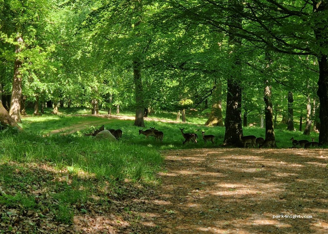 Direkt neben einem Park mit vielen Rehen.