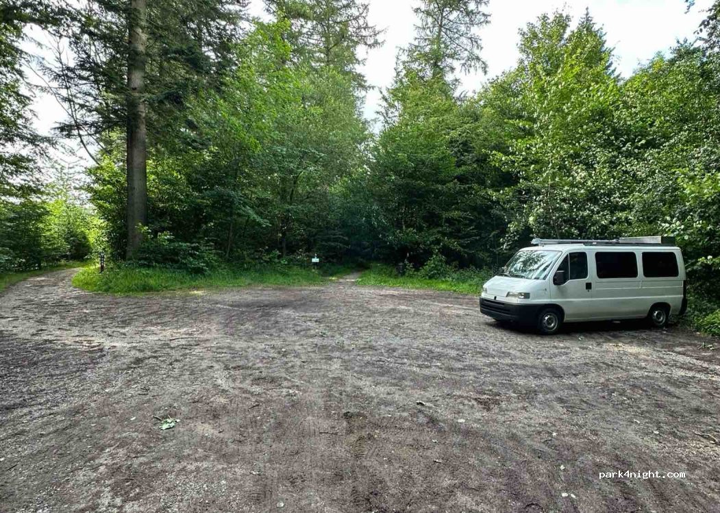 dies ist der Start einer MTB Strecke, die Zufahrt ist eng, der Parkplatz klein. Übernachten stört die Dänen.