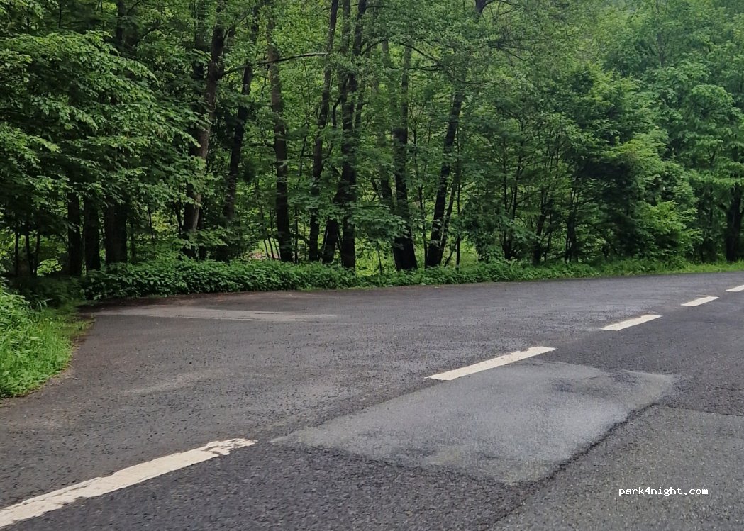 Hikers' parking lot by the river and right next to the road. This means there is a bit of traffic in the morning. Quiet at night.