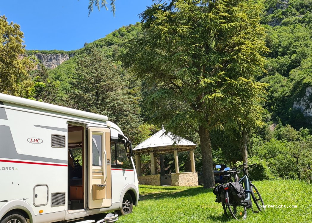 33 Stellplätze in einem bewaldeten Park, der Campingplatz grenzt an den Roubion, Bademöglichkeit.