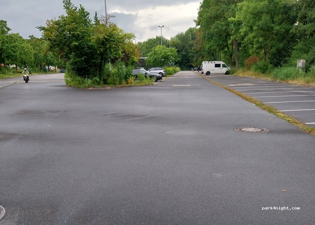 Wir haben hier gut geschlafen. Morgens kommen Fahrschulen für Motorrad Übungen. Wenn man regulär in den Buchten stehen will, sollte man nicht über 6m sein. In der Stadt ist man in 15min.