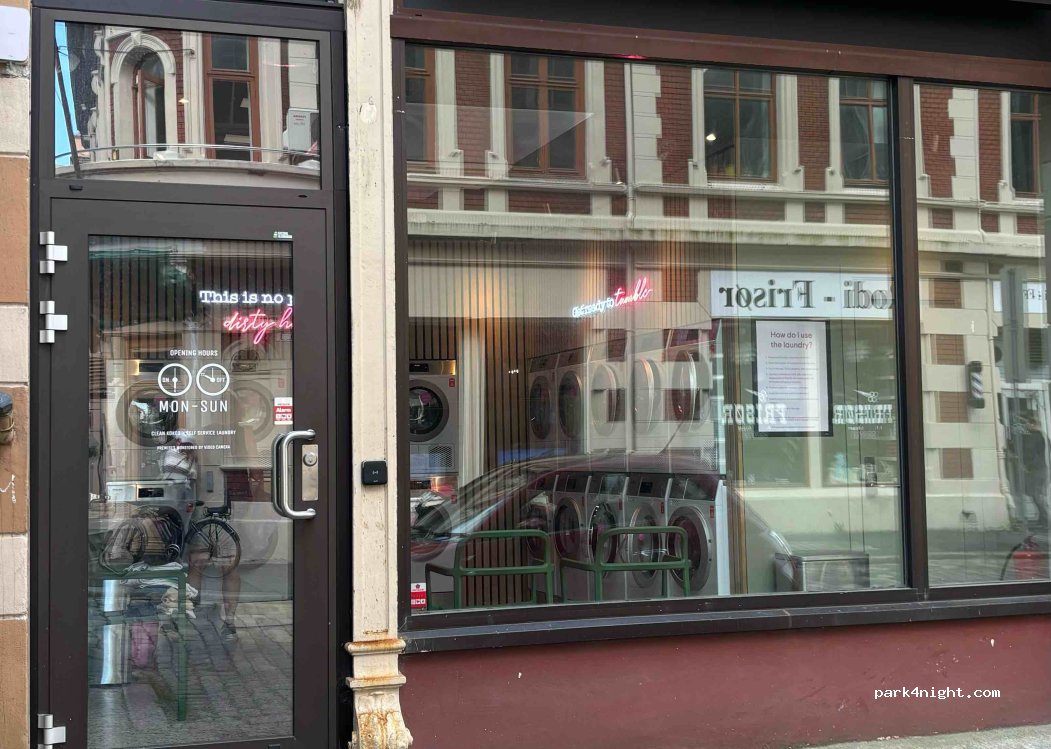 Er waren geen goeie parkeerplaatsen voor een camper. De 1 uur spots waren allemaal al vol. Daarnaast raad ik sterk aan om niet in het weekend te komen dan is het er veel te druk. Ik zat er 4u in totaal voor 3 zakken was. Normaal is dit 2u. Het was er constant druk en alles zat vol. Het was vechten voor de machines. Daarnaast ook maar 3 zitplaatsen met een vensterbank dat ook vol zat.
