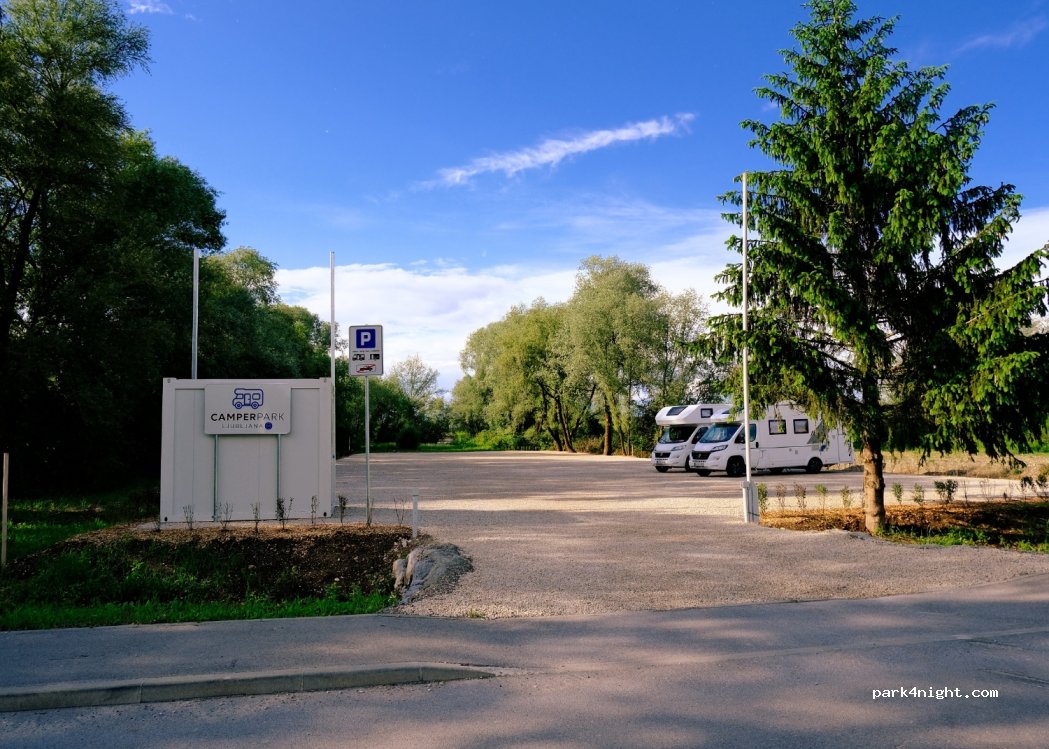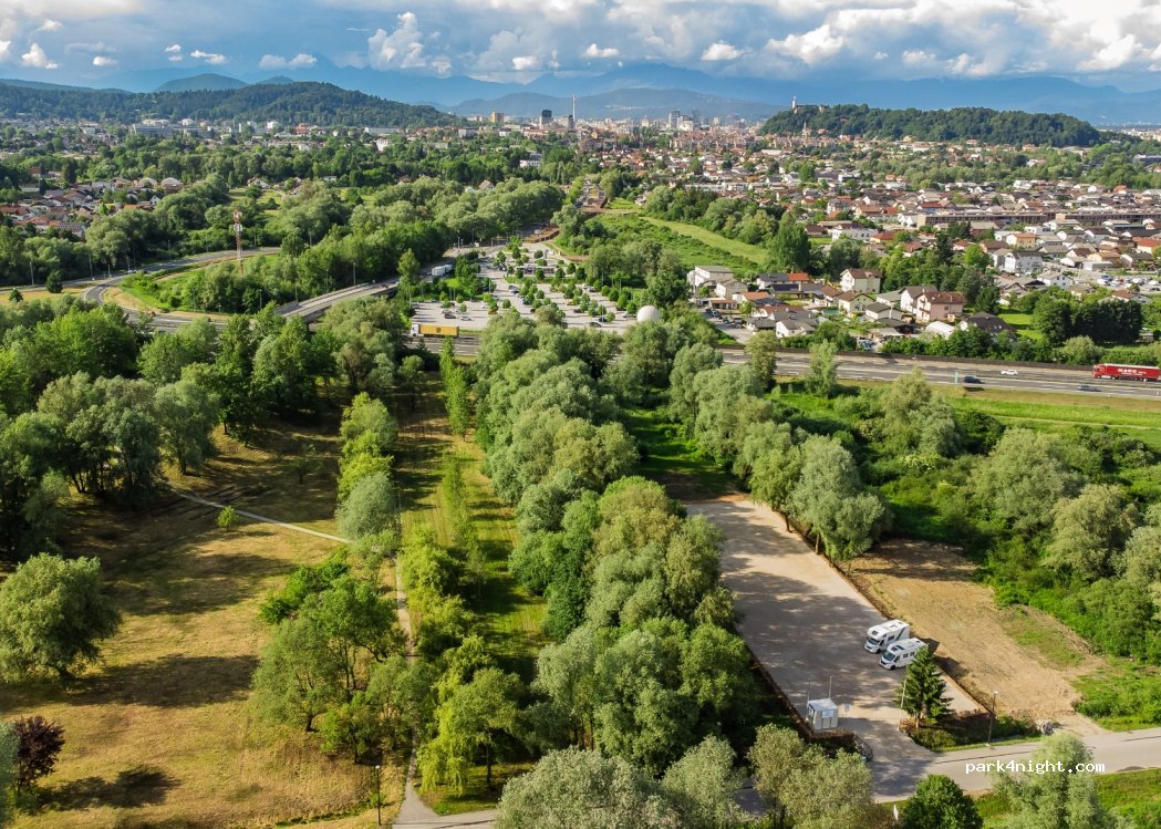 Gute Möglichkeit zum parken und Übernachten, wenn man Ljubljana besuchen möchte. Kein Service, einfacher Schotterplatz, parzelliert. Bus 1,30€ mit Kreditkarte im Bus bezahlen und man ist schnell in der Innenstadt, ansonsten gibt es einen gut ausgebauten Fahrradweg und an der Bushaltestelle Mieträder (1€ 60 min Fahrzeit).