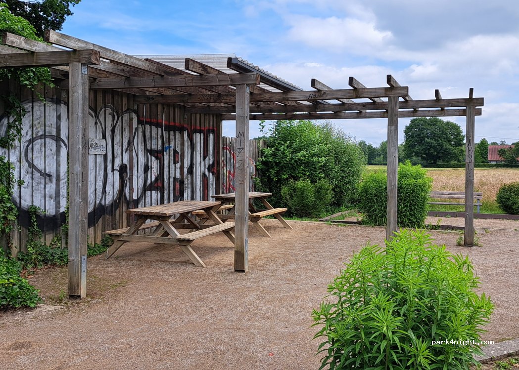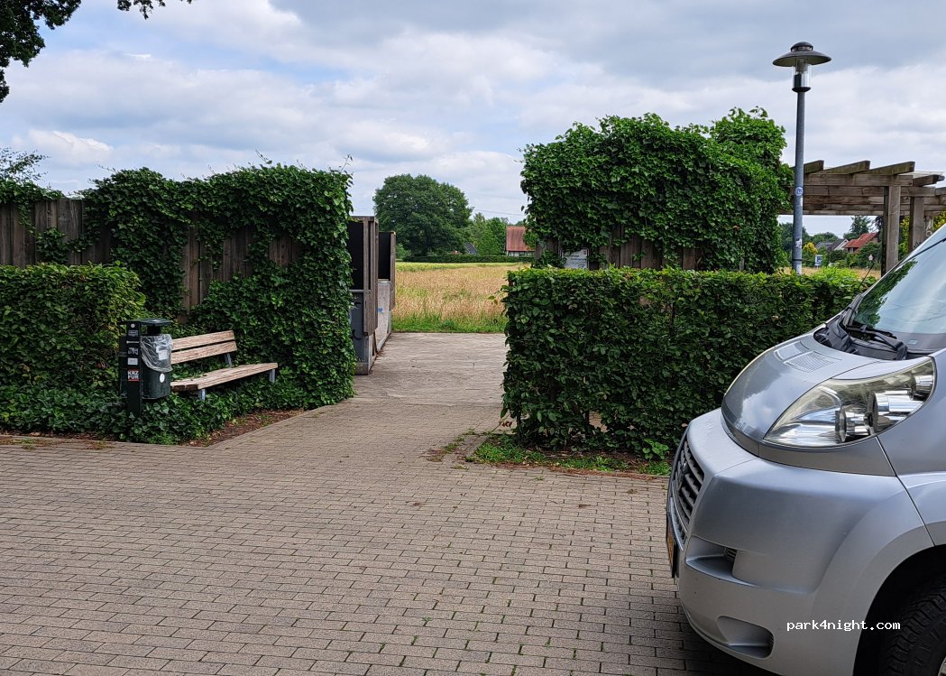 Parkplatz ohne Service. Ruhig für eine Nacht. Gute Bäckerei um die Ecke, eine Gaststätte im Dorf.