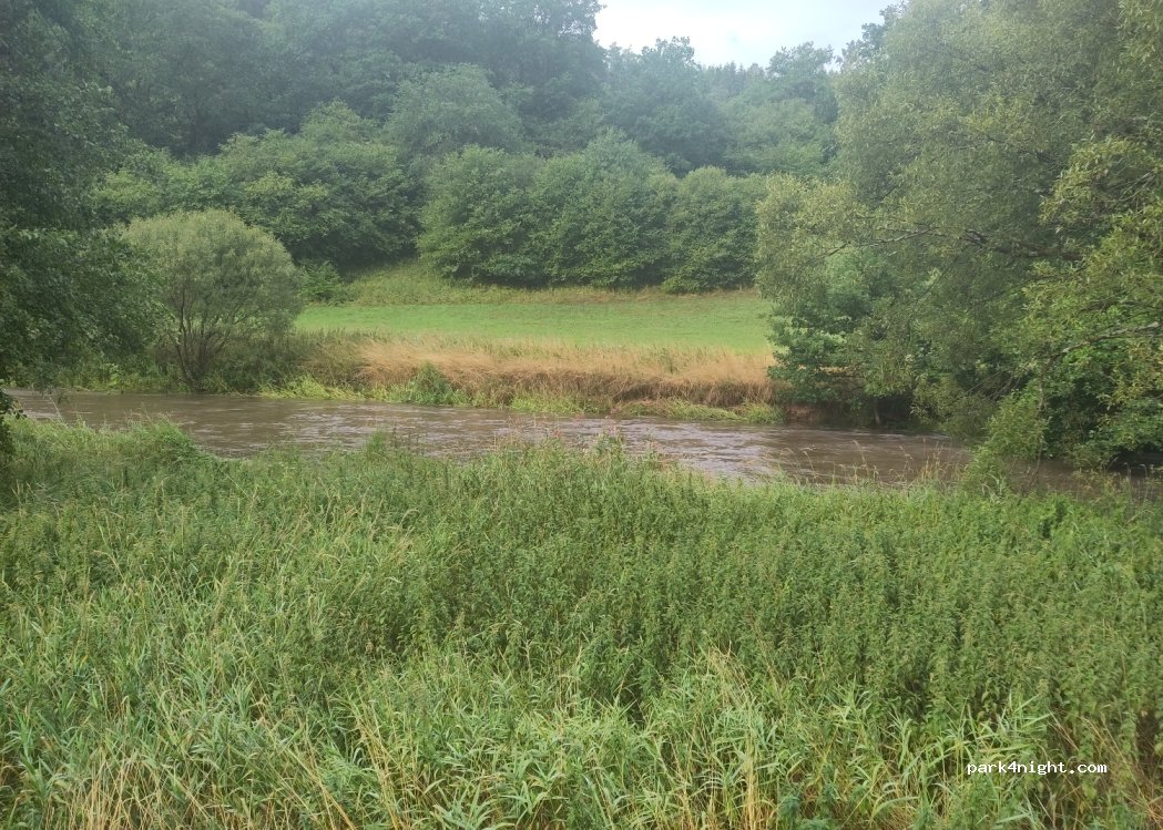 Behind the soccer field, there is another great natural parking spot, directly by the nahe river. super chilly, normally nobody is there. perfekt start point for kayaking (to idar/kirn/bad Kreuznach) / swimming/fishing (licence needed!) only for autark Campers with toilet on board! while big soccer events it could be full - respect these events pls - then this place can stay! super quiet even thought train is crossing hourly on a Bridge nearby. pay attention on the dry grass in summer and your hot exhaust!