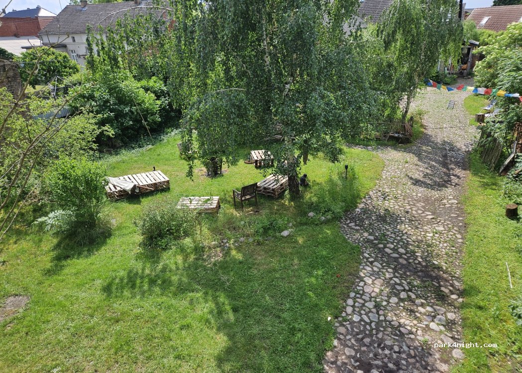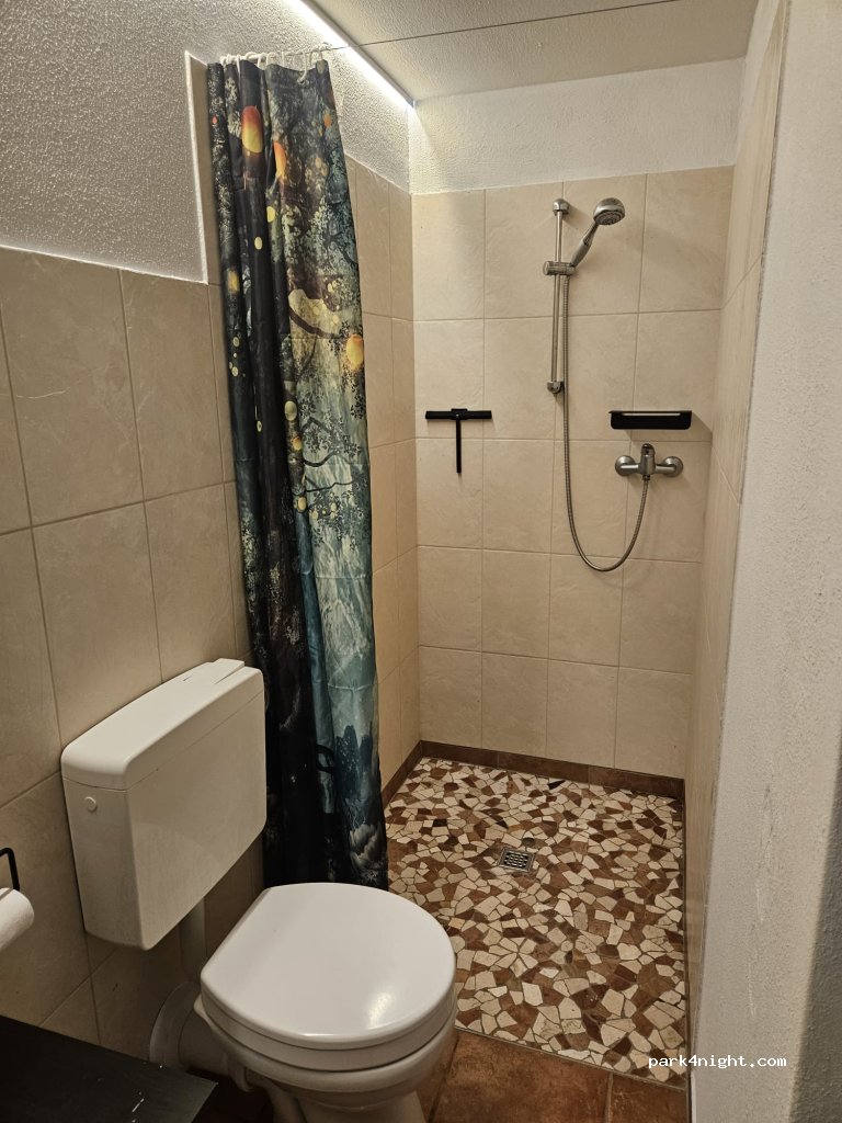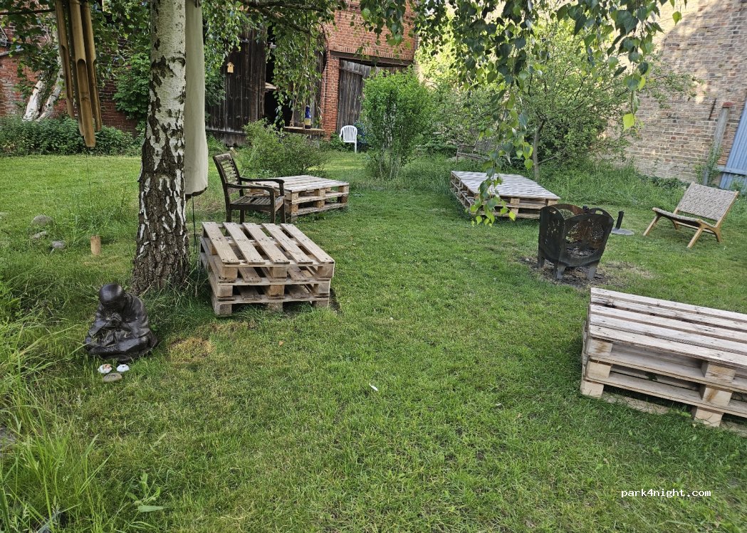 Im Innenhof, in der Natur, mit Feuerstelle, kannst Du verweilen. Ein gemeinsam genutztes Badezimmer mit Dusche und WC ist vorhanden.