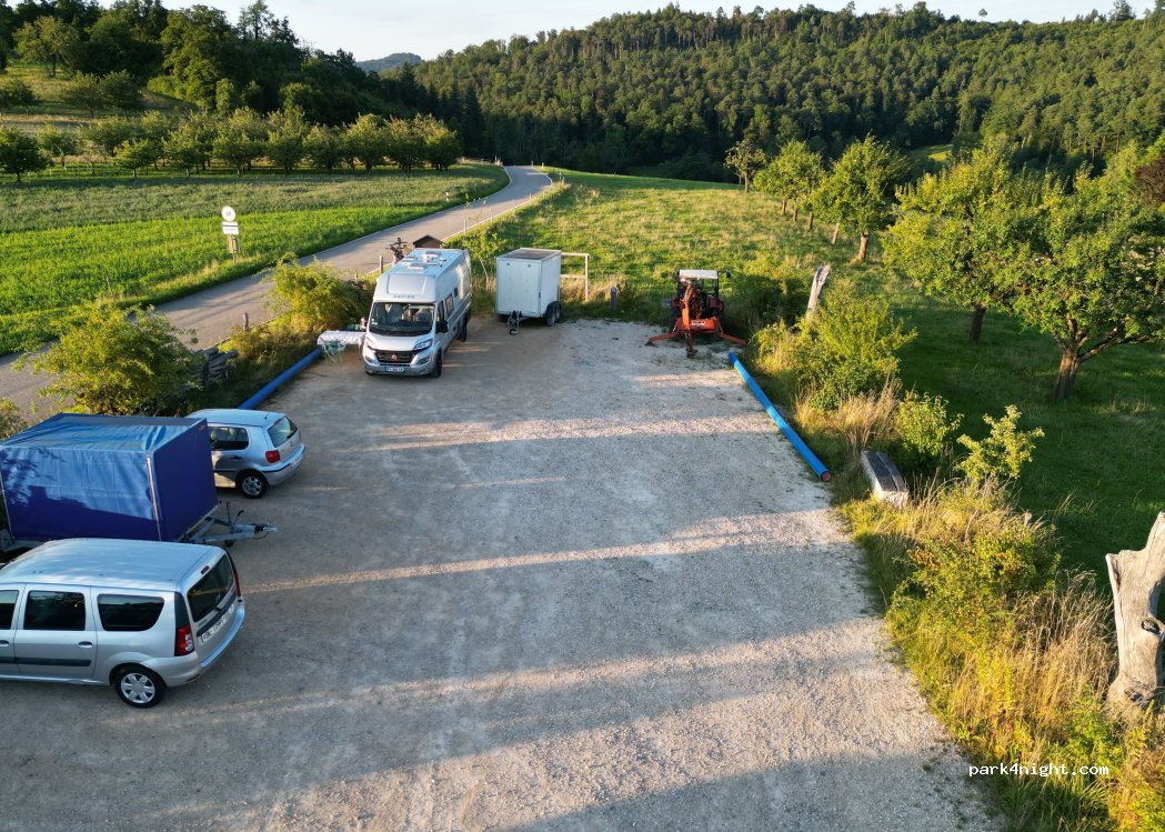 Kiesfläche in der Nähe eines Bauernhofes, der einen Hofladen betreibt. Der Hofladen verkauft jeden Samstag frisches Brot und ist täglich von 8.00 bis 20.00 Uhr geöffnet. Es verfügt über eine Kaffeemaschine, verkauft frisches Fleisch und viele andere Produkte. Ausgangspunkt für Spaziergänge und Gallenrundgänge. Bitte nehmen Sie Ihren Müll mit, damit kein Parkverbot besteht. Sehr ruhiger Ort.