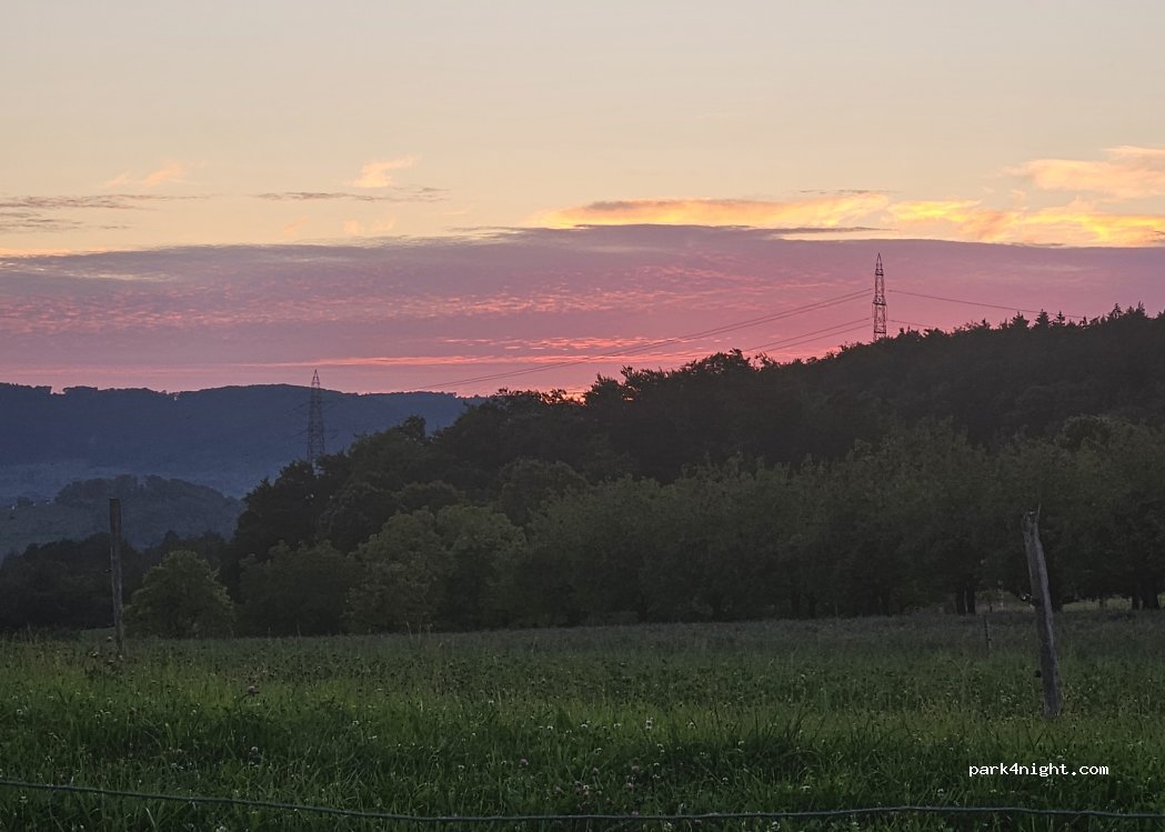 Zona de grava cerca de una finca que opera una tienda agrícola. La tienda de la granja vende pan fresco todos los sábados y abre todos los días de 8:00 a 20:00 horas. Tiene cafetera, vende carne fresca y muchos otros productos. Punto de partida de caminatas y circuitos biliares. Por favor lleve sus residuos consigo para que no esté prohibido aparcar. Lugar muy tranquilo.