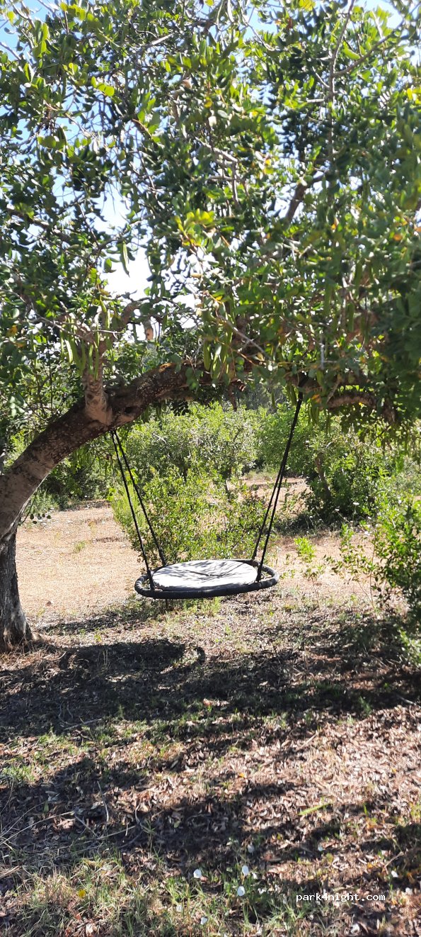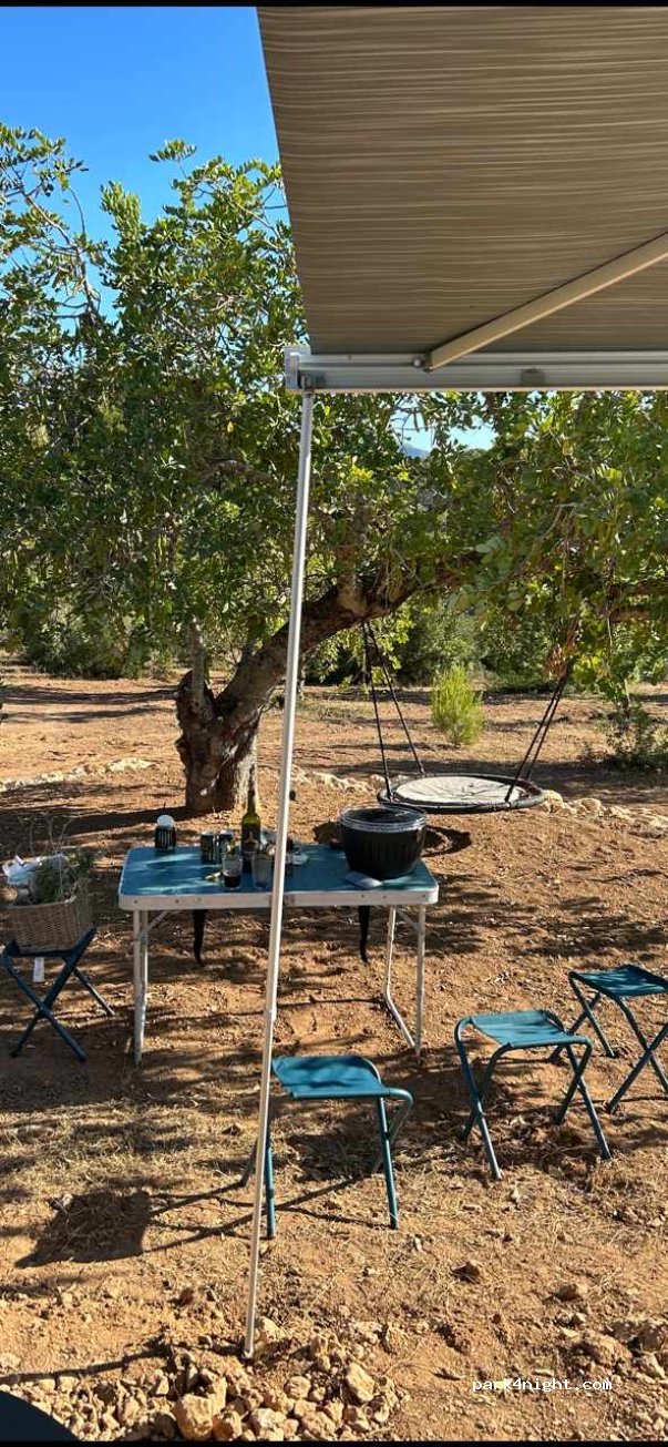 Our pitches offer shaded spots with chairs and a table under an algarroba (tree) or olive tree.