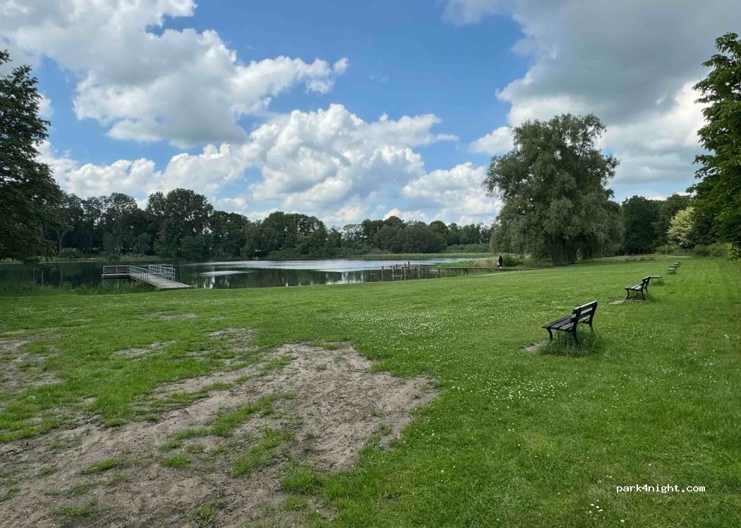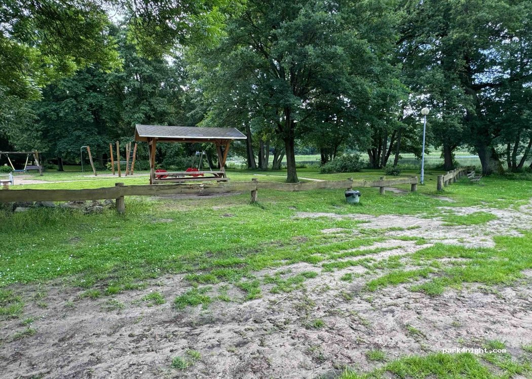 standen hier eine Nacht mit Dachzelt ohne Probleme. See ist schön aber viele Mücken zur Zeit. für Hunde gibt es einen extra Strand.