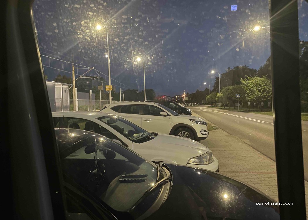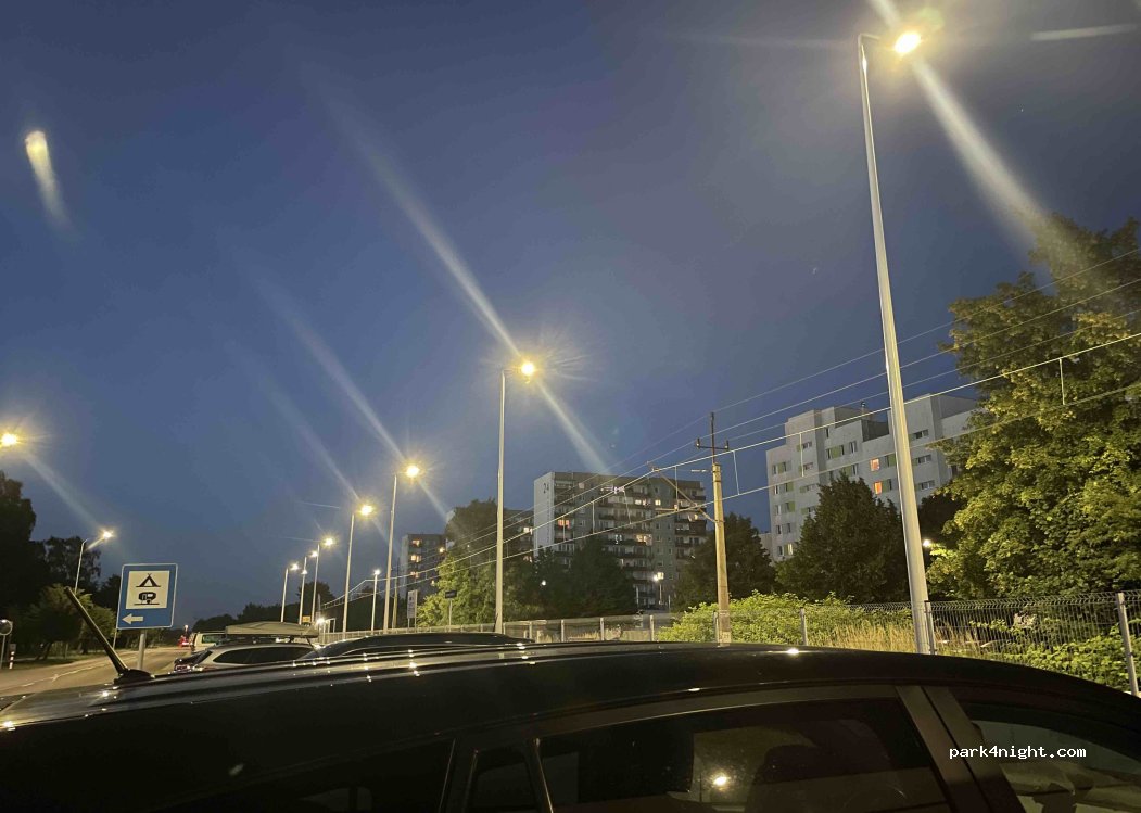 Das Parken ist kostenlos, aber direkt neben der Straße und hinter Ihnen fährt ein Zug. Auf der anderen Straßenseite befindet sich ein Campingplatz.