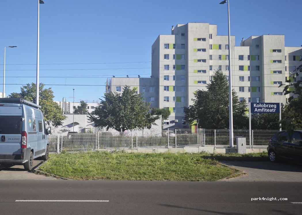Gerader Parkplatz. Wir konnten mit unserem Campervan 6,2m sehr gut stehen. Züge kaum hörbar bzw. nachts nicht häufig gefahren. Fußläufig zum Zentrum und Strand