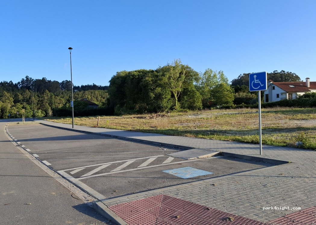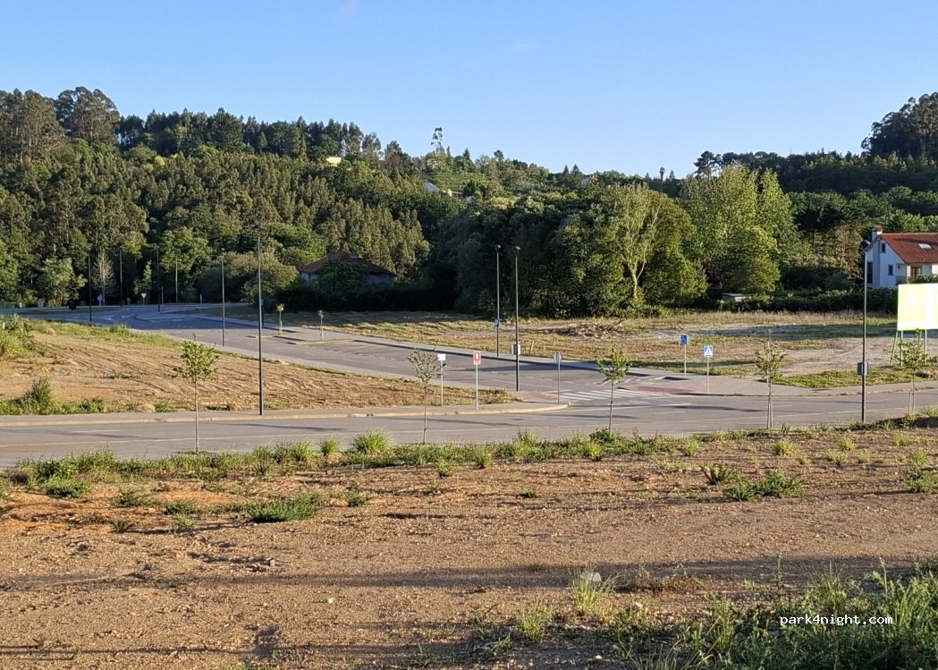 Aire de stationnement dans une zone en développement, située dans une rue latérale plus calme. Aucun service disponible. Déchets à environ 150 mètres.
