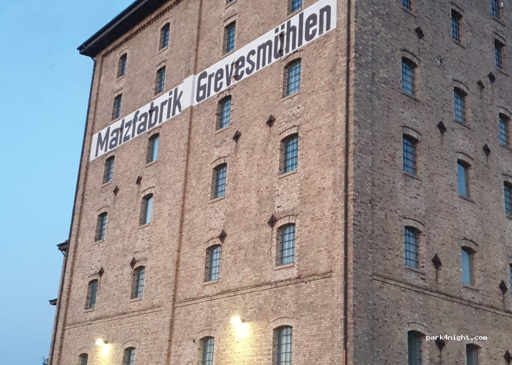 Public car park in the middle of Grevesmühle near the malt factory. Free for 4 hours during the day with a parking disc. Empty at night, no barrier or height limit. Mosquito-free, quiet, good internet reception.