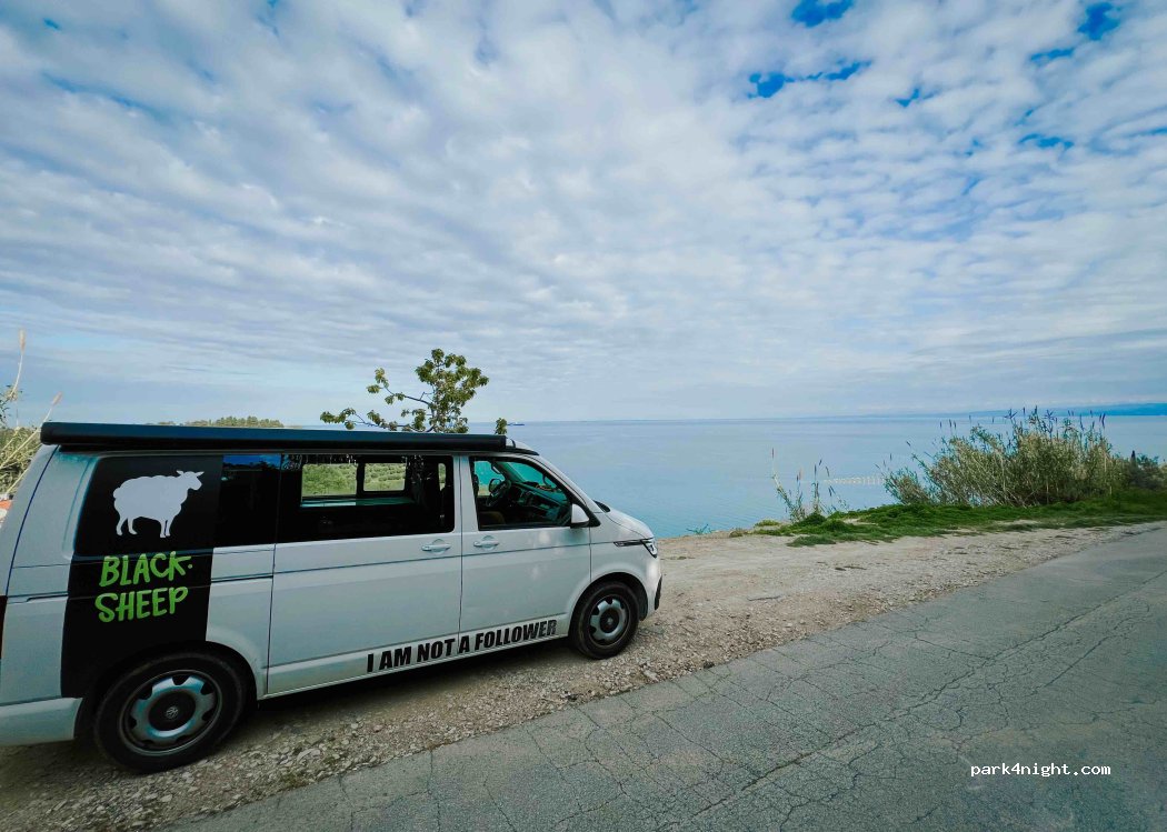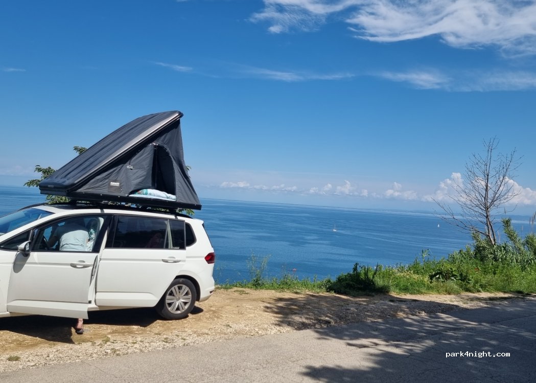 Superbe vue ! On s'est arrêté pour manger puis on a laissé le van ici pour aller visiter Piran. Pas eu de problèmes.