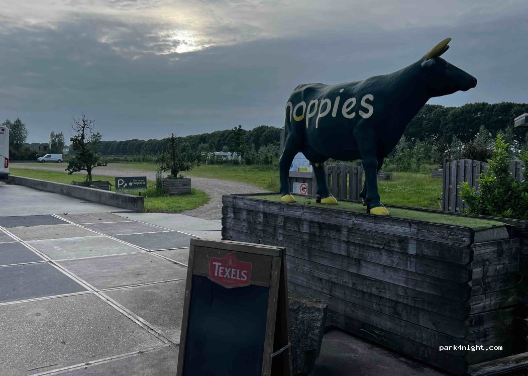 Super leuk staan! Met onze 13m konden we niet op de camperplaatsen, maar we mochten op de parking staan. Leuk sanitair, wel wat weinig in aantal. Zeer goed ontvangen geweest. Hoppies is een super leuke speeltuin met de kinderen. Betalen gewoon via een envelop in de brievenbus. Echte aanrader, prachtig rustig staan overdag. S'morgens wat lawaai van de champignonkwekerij tijdens de week.
