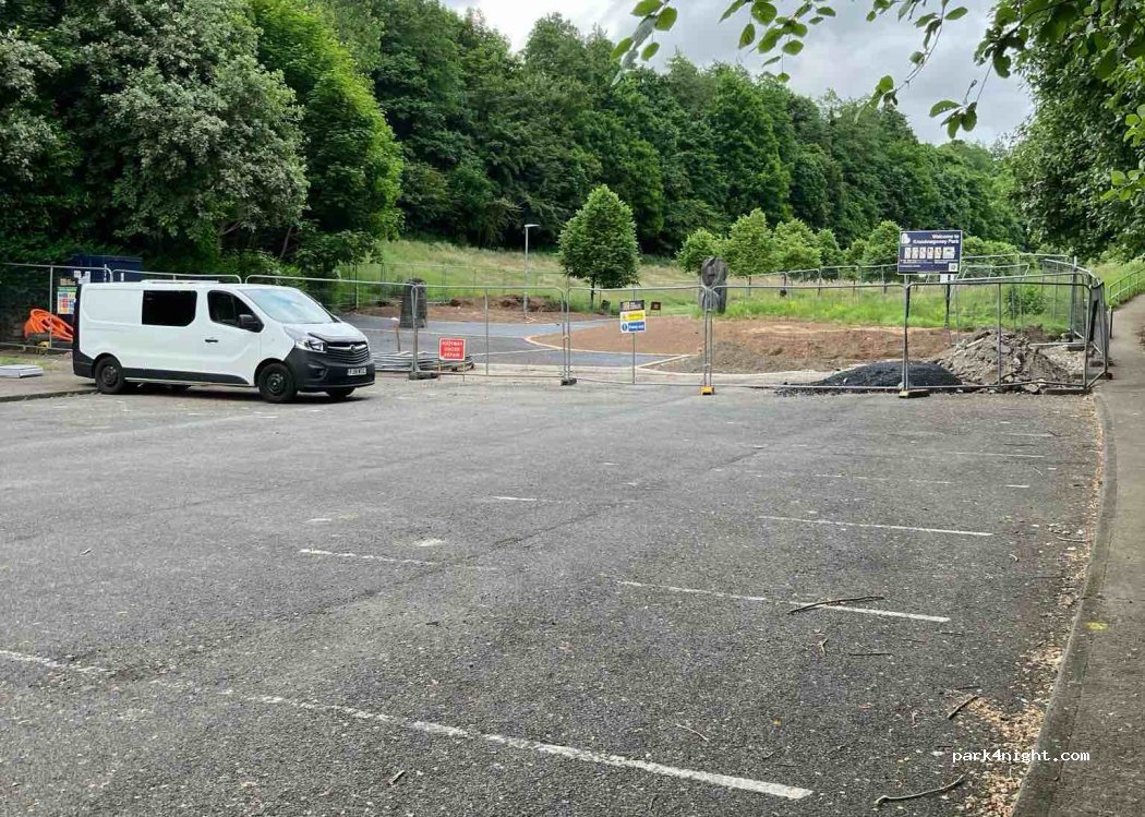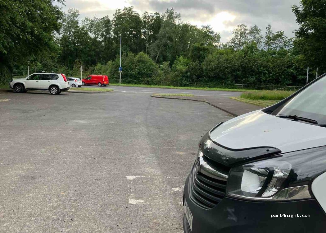 Large car park, suitable for larger motor homes. Half the carpark is currently being remodeled. There are no signs saying any limits or no overnight parking. The road is busy but it’s far enough back to not be bothered. Leafy and shady. Not near any homes or residential views to be a nuisance. Some airport noise but it stops at 10pm. Had a very safe + quiet night