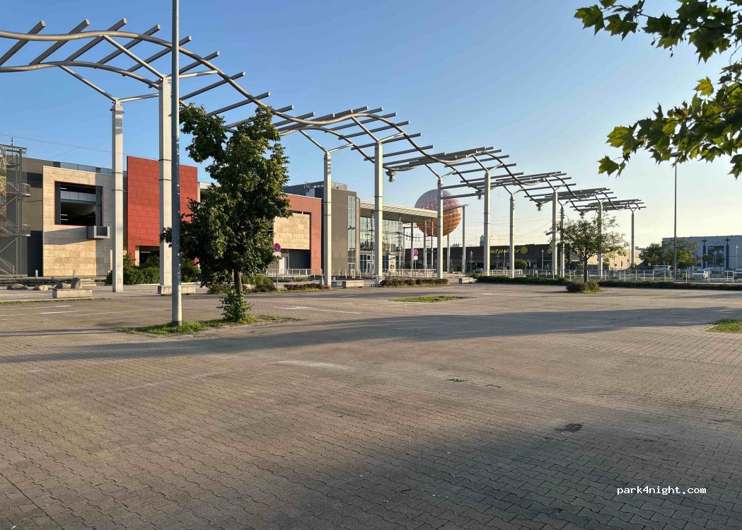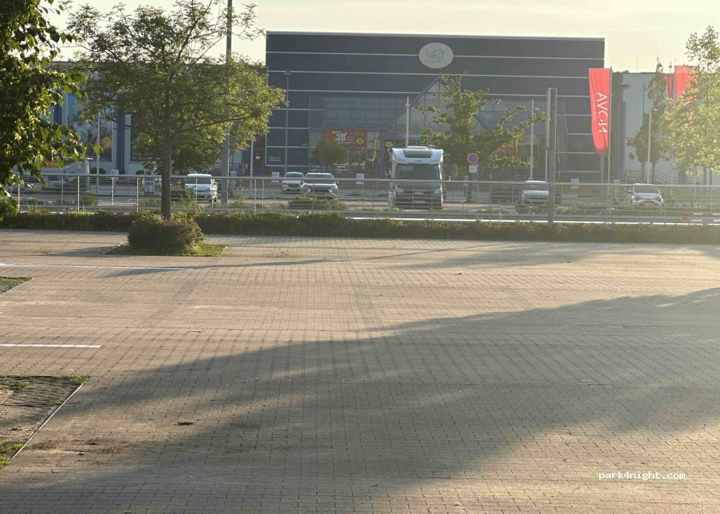 Enorme parking para pernoctar día y noche. Es el parking de un Centro Comercial muy grande donde pueden encontrarse muchos servicios, cafeterías, aseos, etc. No tuvimos ningún problema durante las 24 horas.