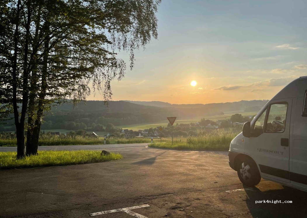 Wander-Parkplatz mit Weitblick und schönem Sonnenuntergang