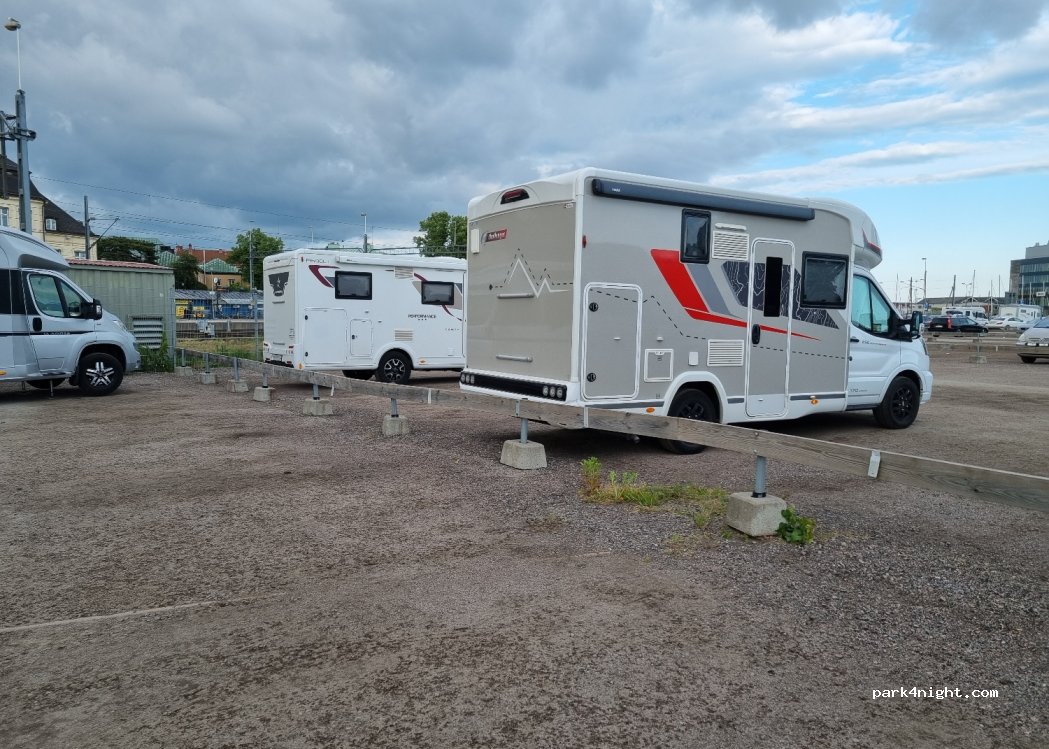 Wir haben hier zusammen mit anderen Campern geparkt, um das Schloss anzuschauen ( Die einzige Attraktion in Kalmar). Preis sehr günstig. keine Ahnung, ob man hier über Nacht bleiben kann oder will.
