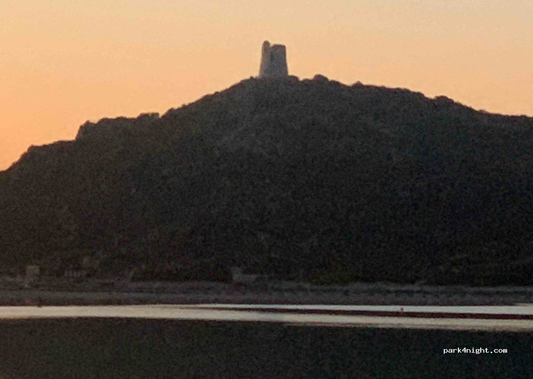 Small parking lot in front of the large parking lot at Spiaggia di Porto Giunco. Right next to the access to the jetty that leads along the lagoon to the beach. Had a relaxing night here.