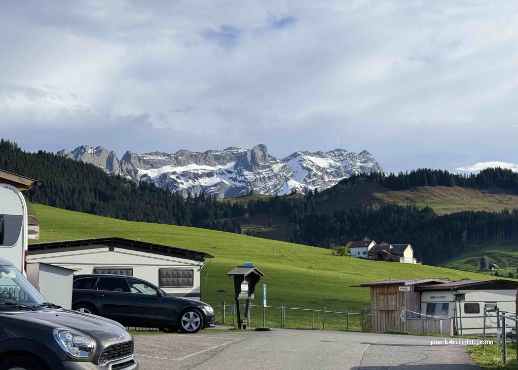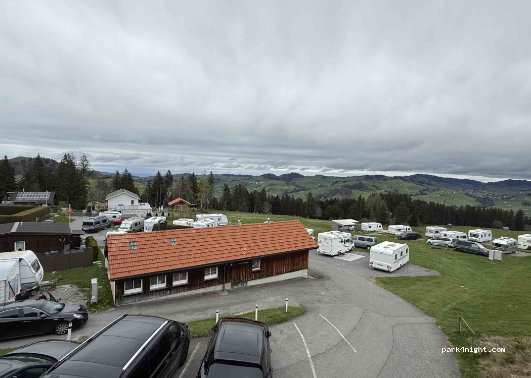 Campingplatz mit toller Aussicht ins Appenzeller Land. Teilweise sehr schräg, unbedingt Keile dabei haben. Sanitäranlagen neu und sauber, duschen kostet 1 Franken. Freundliche Besitzer und hilfsbereit. Restaurant am Platz, haben wir aber nicht ausprobiert. 45 Franken pro Nacht/Kastenwagen