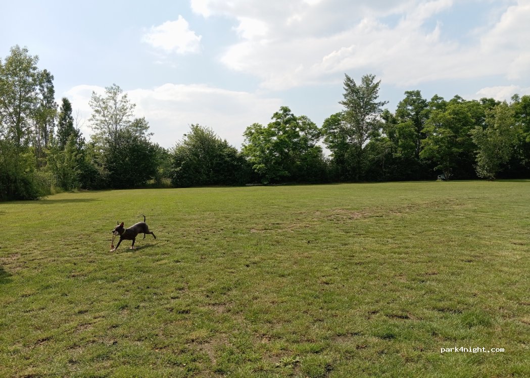 Hundeauslaufplatz um die Fahrt im Wohnmobil etwas angenehmer für die Hunde zu gestalten. Wiese eingezäunt mit mindestens 1000qm Größe. Perfekt um im Rahmen einer Rast die Hunde kurz laufen zu lassen.