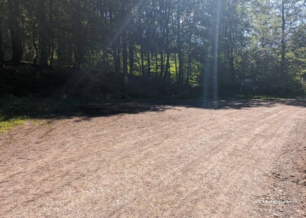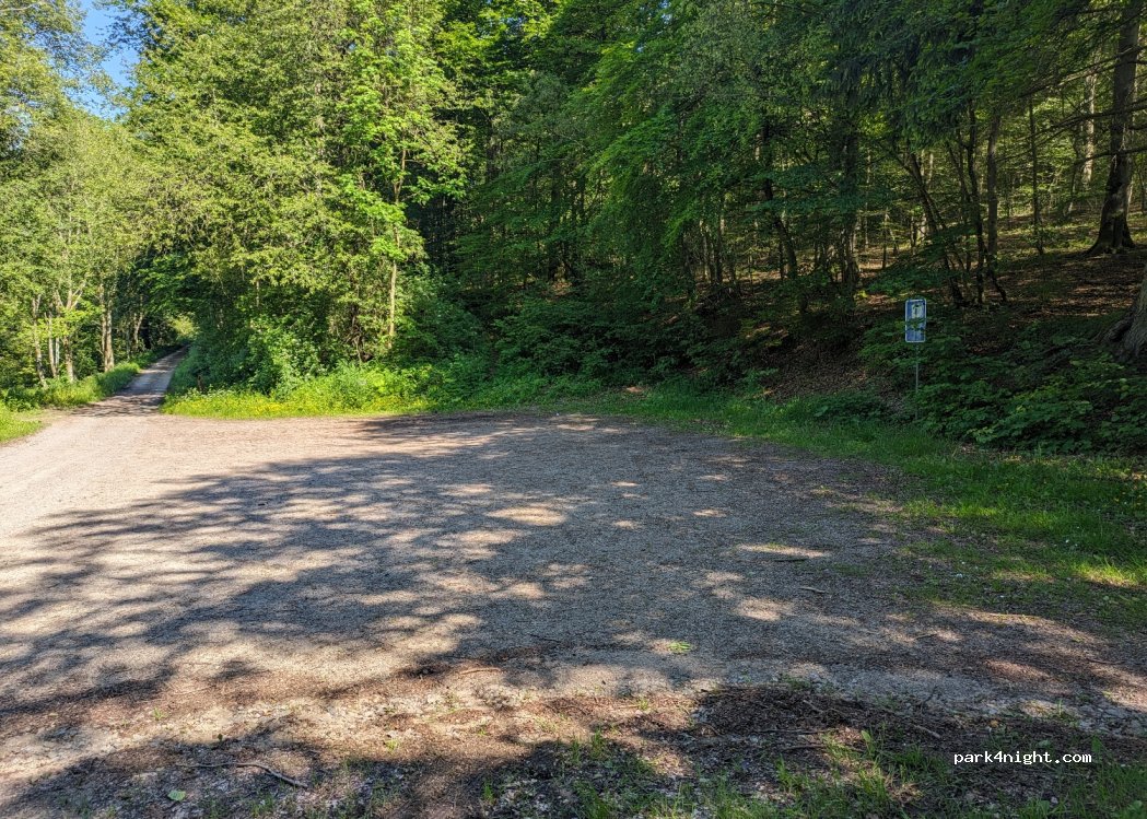 Very inconspicuous, in the middle of the forest. Access via uneven gravel road.
