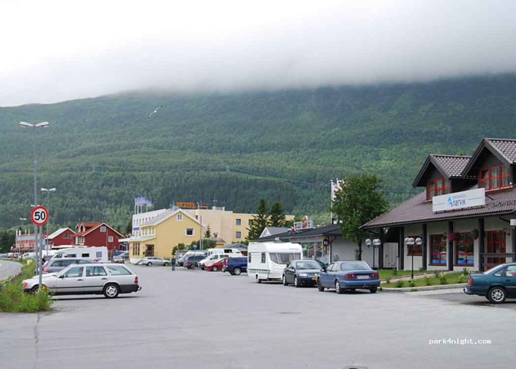 Safe parking with lighting...safe overnight stay on a main road. The beach is directly opposite. There is a snack bar with toilets in front of the door. Ideal starting point for entering the Lofoten Islands.
