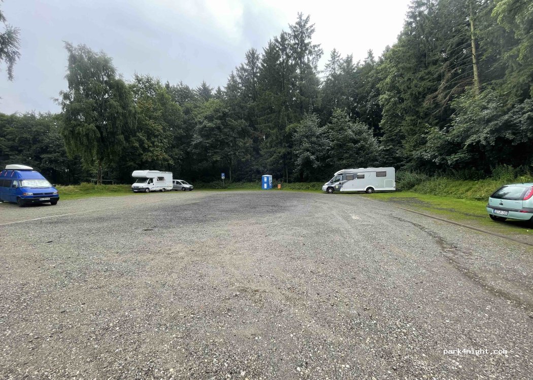 Wunderschöner Parkplatz an einem See. Nicht einsehbar von der Straße. Der See läd zum Spazieren ein. Schöner Spielplatz. An warmen Tagen öffnet dort ein Kiosk/Imbiss. Wenn der Kiosk geöffnet ist oder der DLRG vor Ort, sind die Toiletten geöffnet. Dort sind auch Duschen. Im Außenbereich sind auch Duschen. Auf der Liegewiese sind keine Hunde erlaubt, beim Spazieren um den See kein Problem. Ein großer Spielplatz ist hier auch. Und im Winter ein Rodelberg. An Wochenenden feiern dort oft Jugendliche, ansonsten aber sehr ruhig.
