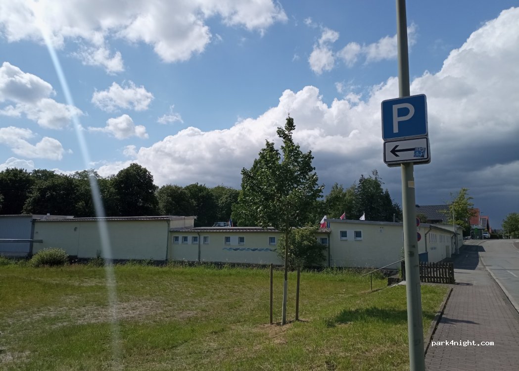 Parkplatz neben einem Freibad auf Stein-Gras Untergrund. Auch für grosse Wohnmobile geeignet. Einkaufsmöglichkeiten ca. 5 Min. Fussweg. Fur Hunde viele Möglichkeiten.