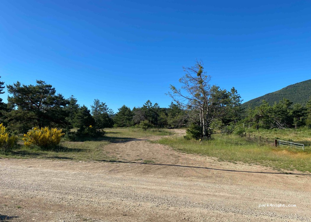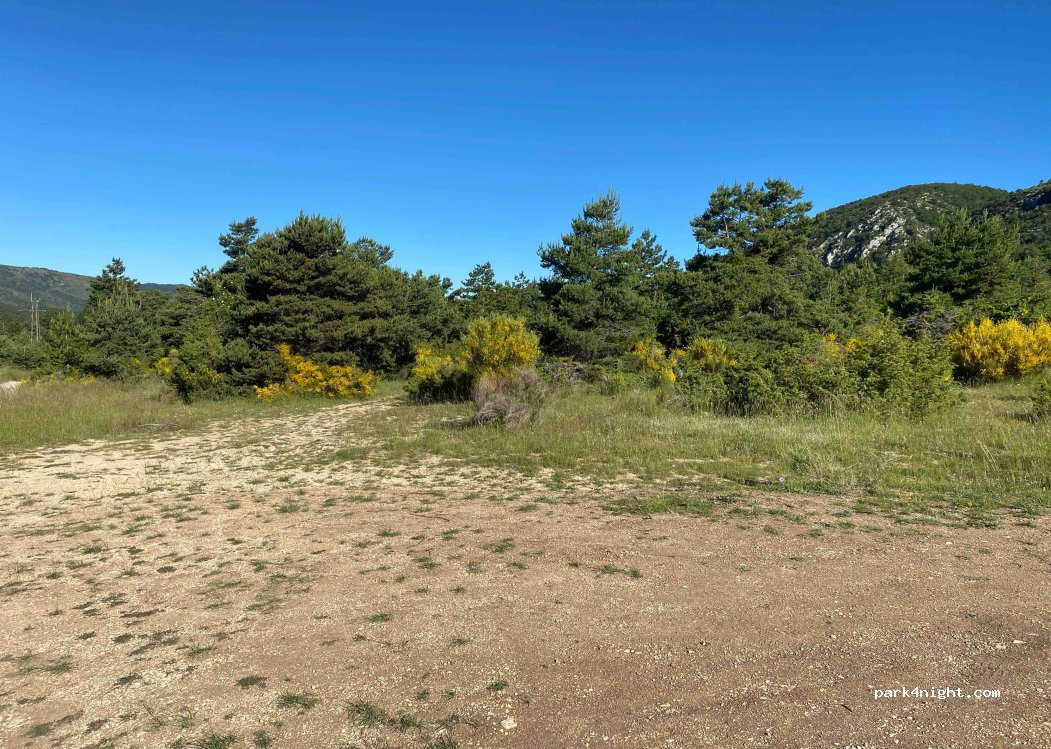 Parking at the start of the Roman road hikes / ruins of Chateauneuf-les-Moustiers (800m away) (view of the valley) + other hikes. Easily accessible for all types of vehicles. Overnight stays prohibited.