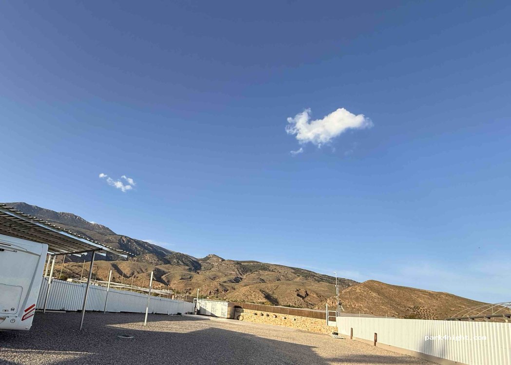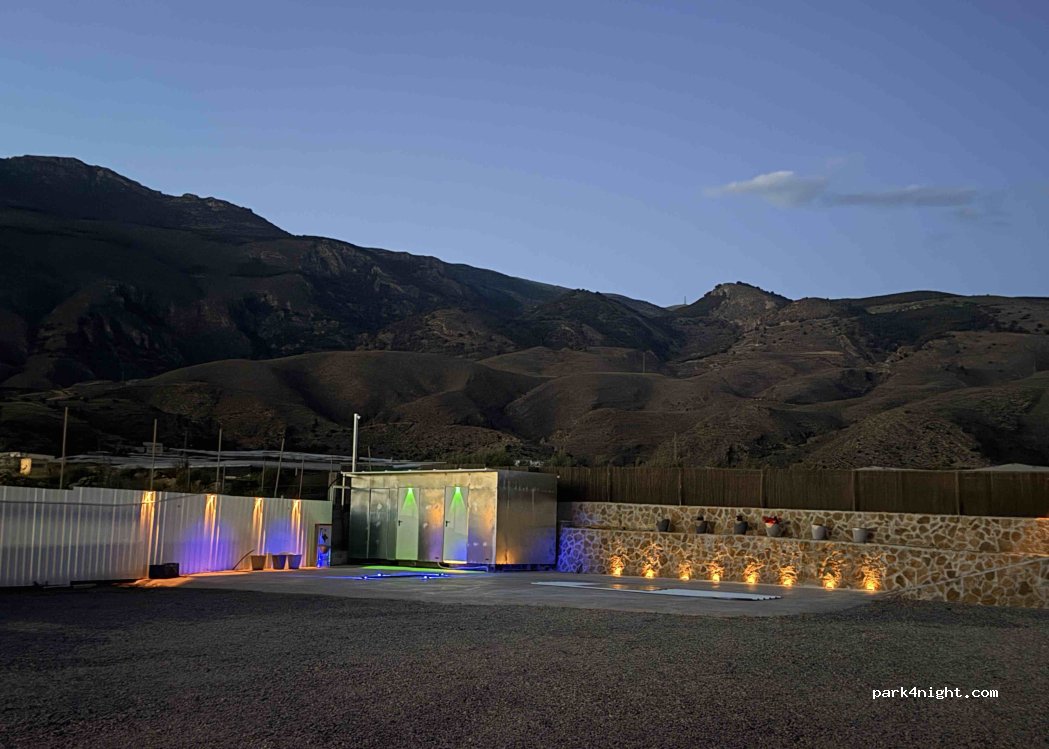 Espectacular. Sitio con plazas muy amplias. La zona de baños está limpísima y es un lavabo amplio. El dueño es súper atento y te da todas las facilidades.. Las vistas a la montaña de Dalías es preciosa por la mañana. Le quedan algunos detalles para terminarla,pero poco a poco que acaba de abrir el segundo parking.
