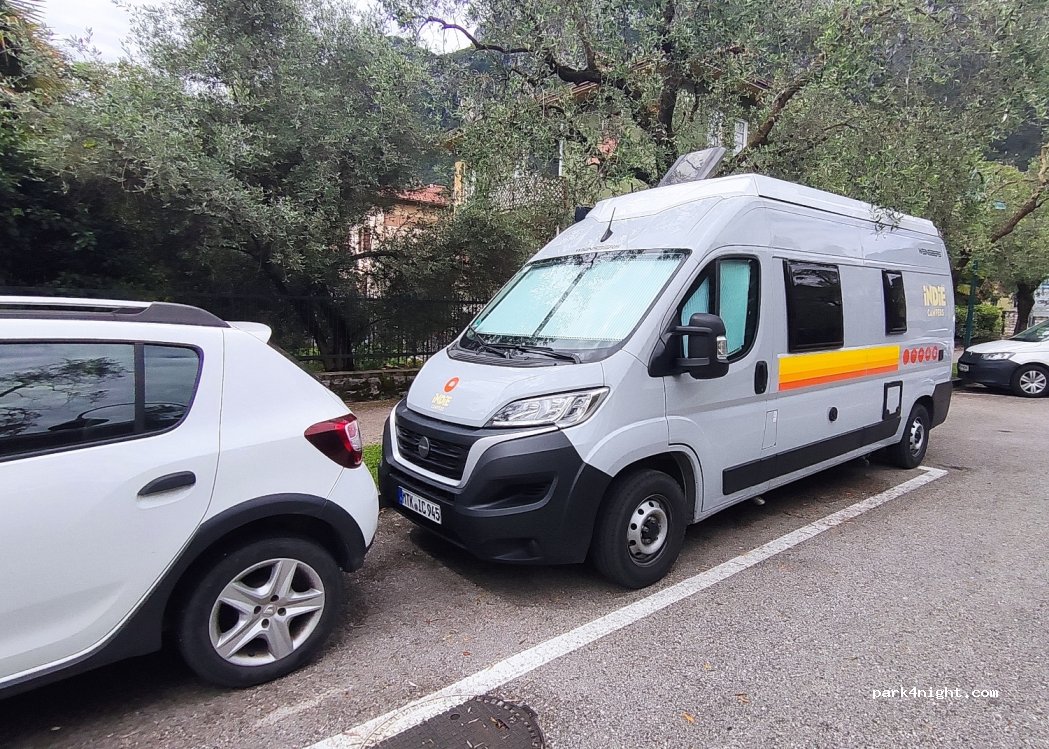 Quiet parking on a secondary street 5 minutes from the city center. Space for up to 2 Campers of 5.5m (Ducato) along the street. Spaces for small campers parked diagonally. Little traffic at night and the place feels quite safe. We spent 1 night and took advantage of exploring during the morning.