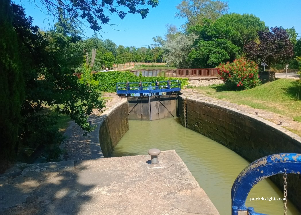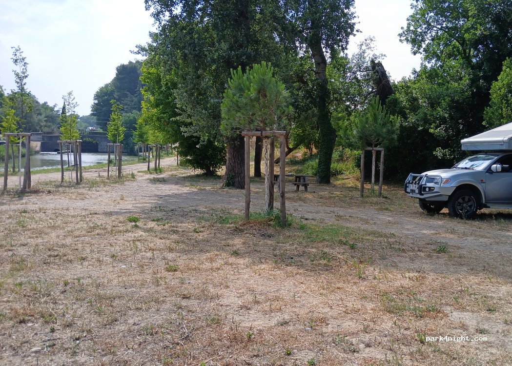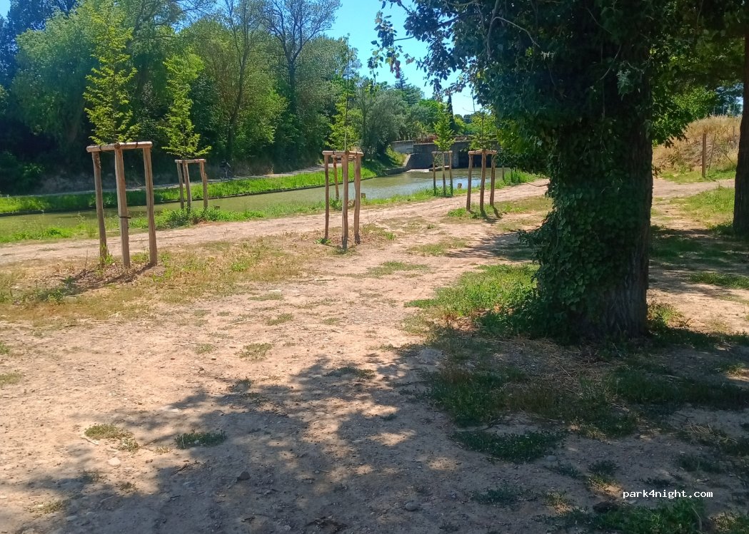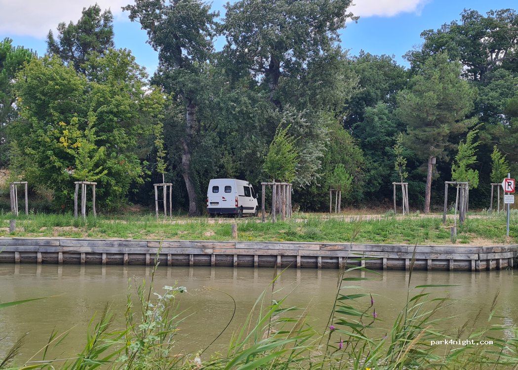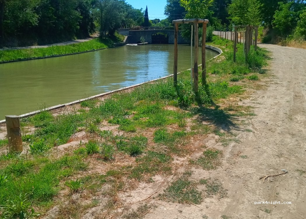 Parking accesible pour camping cars de 7,50 mètres. A éviter en période de pluie car le sol est en terre. Attention : moustiques. Etape au calme idéale pour un transit ou faire du vélo en bord du canal du midi.