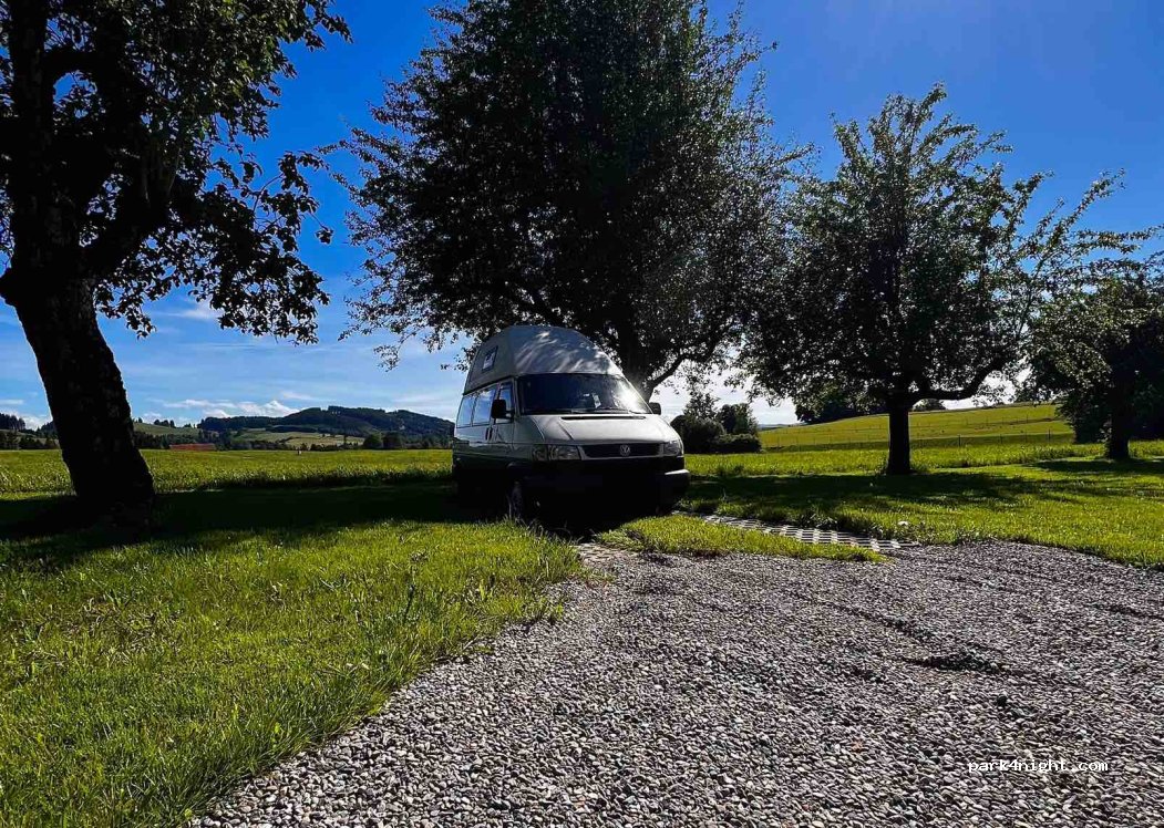 Reservierungen sind für diesen Stellplatz leider nicht möglich. Es sind 3 Stellplätze für Campingmobile der eher kleineren Größenordnung. 8 Meter maximal. Bitte nicht das Grundstück vom Nachbar zum Wenden/Halten usw nutzen. Keine Gespanne oder Wohnwägen möglich und auch keine Zelte. Strom gibts, Toilette ist eine Öko Toilette, bitte sorgfältig trennen und hinsetzen! Wasser gibts am Schlauch. Alles ganz wunderbar, zwanni geht pro Nacht pro Mobil klar, herrlicher Platz, mit Bergsicht bei klarer Witterung. Der Hof bietet auch eine Eventfläche, ein Musikstudio & eine Ferienwohnung. Top Leute! Alle Instruktionen erhaltet ihr vor Ort auf den Schildern. Bitte Privatsphäre der Anwohner achten und nur die Fläche bei den Stellplätzen nutzen. Genau so! Will man stehen!
