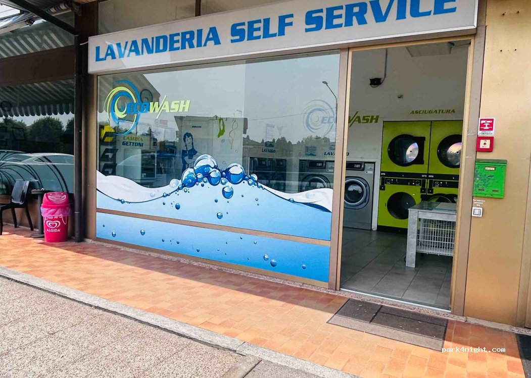 Lavanderia self service pulita e pratica con macchine nuove. Parcheggio fuori dal supermercato dall'altra parte della strada